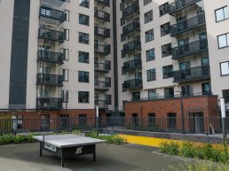 В данном 9-этажном доме бизнес-класса находится 278 лотов площадью от 30 до 130 «квадратов» с 3-метровыми потолками. Подземная парковка на 220 машино-мест оснащена системами контроля доступа и отопления. В объекте монтированы технологичные инженерные системы. Во дворе дома установлена детская площадка. Первый этаж отведен под коммерческие помещения. Здесь же расположена игровая комната для детей.