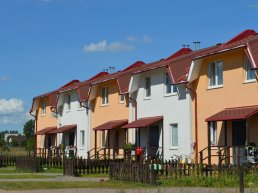 В трех таунхаусах осуществляется устройство утеплителя на этажах, ещё в двух домах производится монтирование балконов и крылец.